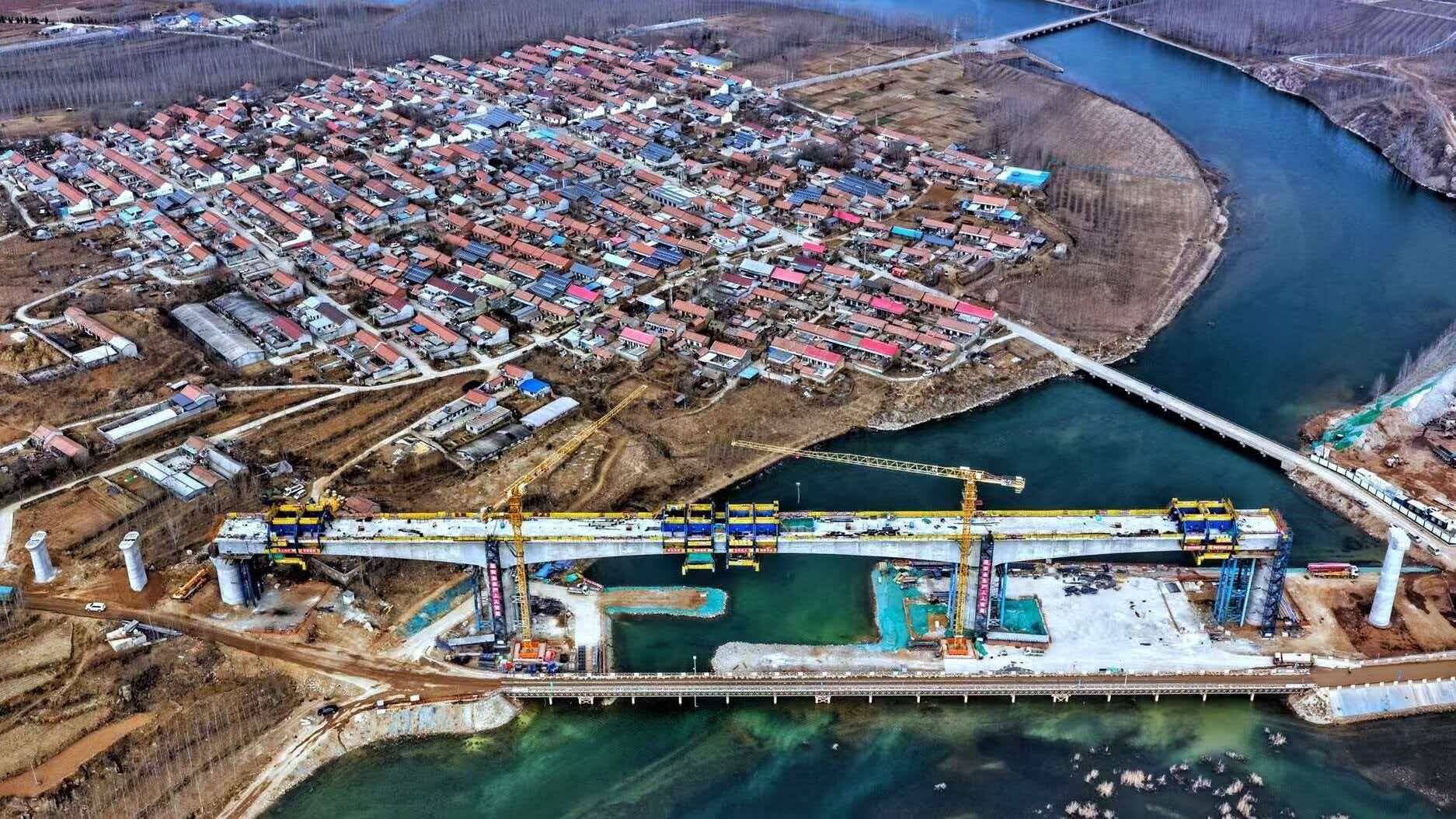 真孝善·闪电新闻12月21日讯 12月21日,由雄安高铁公司建设、中铁十局承建的新建潍坊至宿迁高速铁路站前五标段上跨桑园镇袁公河128米连续梁顺利完成合龙,标志着桑园镇袁公河特大桥主体结构取得重大阶段性进展,同时彰显了中铁十局在铁路工程建设中新技术、新工艺应用方面实现新突破。