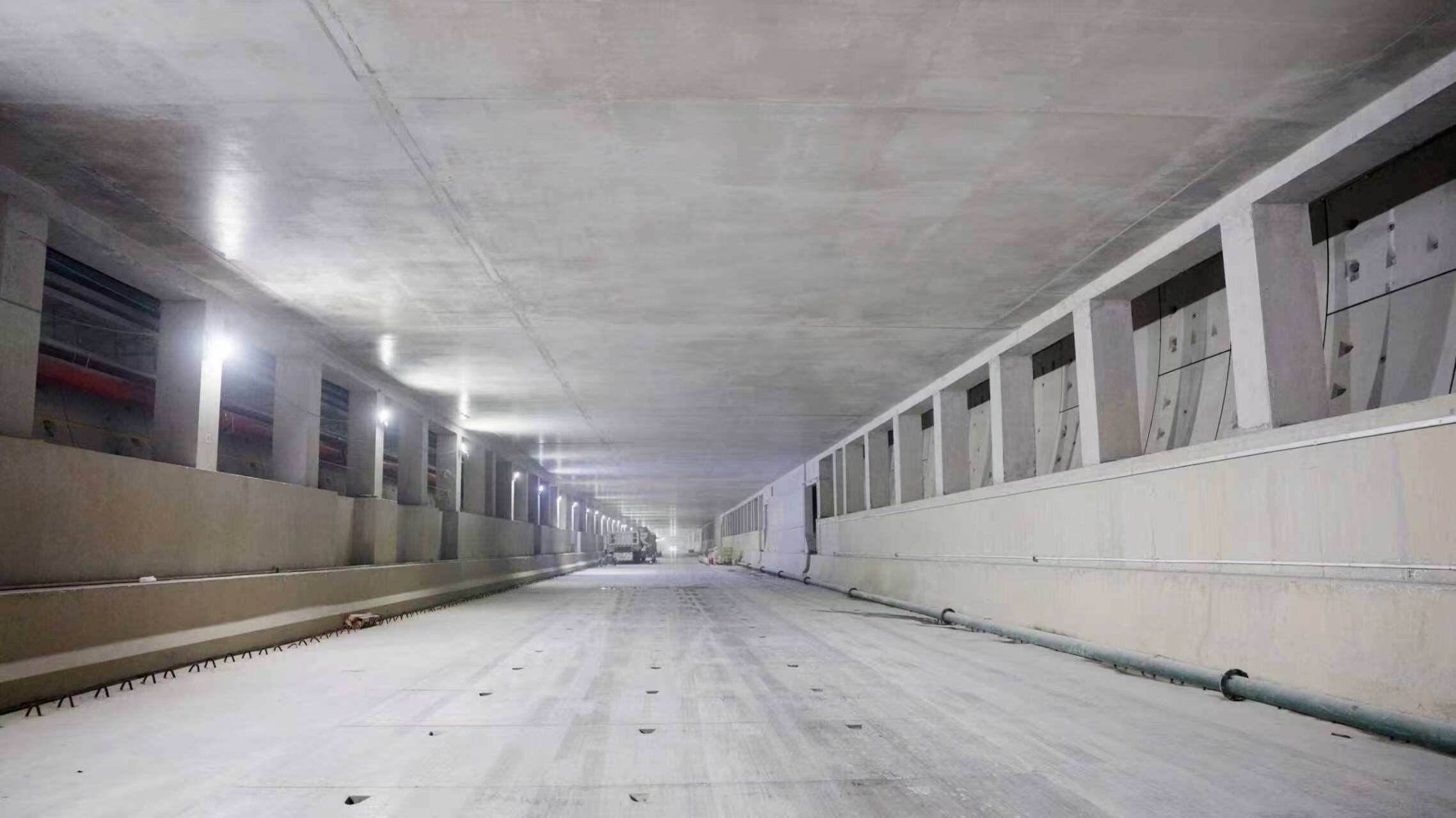 真孝善·闪电新闻12月30日讯 12月30日,世界最大直径水下盾构隧道济南黄岗路黄河隧道上层车道板结构施工顺利突破3000米,标志着隧道内部结构施工正式迈入攻坚决胜阶段,为早日实现隧道通车奠定坚实基础。